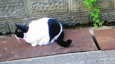 下校中に友人達と遭遇した可愛らしいブチさん。